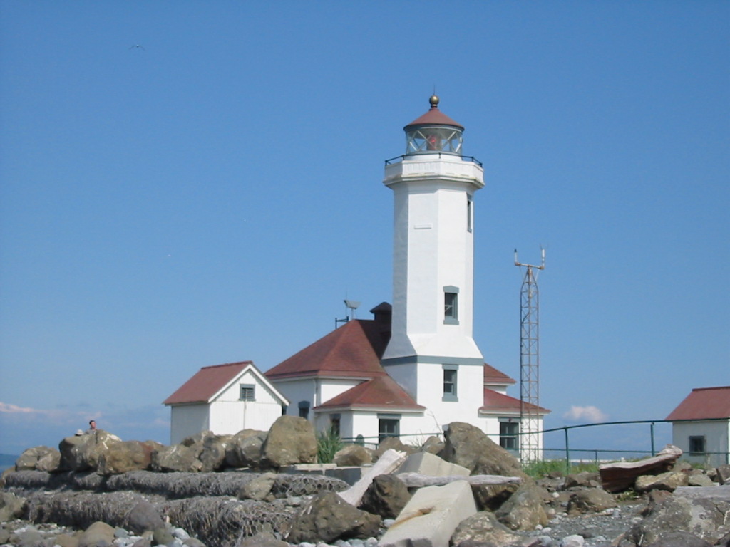 The Point Wilson lighthouse [below] is located at the Fort Worden State Park. It was built in 1913 and is a working lighthouse. Fully automated in 1976, it is run by the Coast Guard from Port Angeles. Tours are available from May to September on Saturdays from 1:00 – 4:00 p.m.